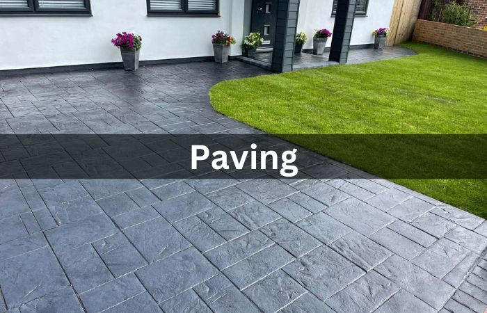 Choose paving options such as granite, limestone, asphalt, imprinted concrete, resin sandstone, porcelaine, cobblelock, gravel, tarmac and concrete slabs of various colors and designs.